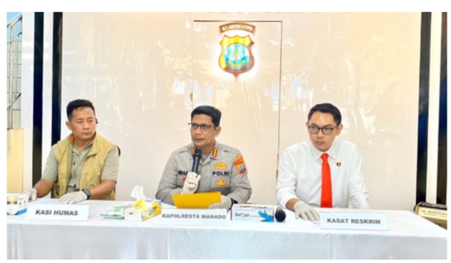 Press release yang digelar pada Senin (13/4/2026) itu dipimpin langsung oleh Kapolresta Manado Irham Halid, didampingi Kasat Reskrim Elwin Kristanto serta Kasi Humas Agus Haryono.